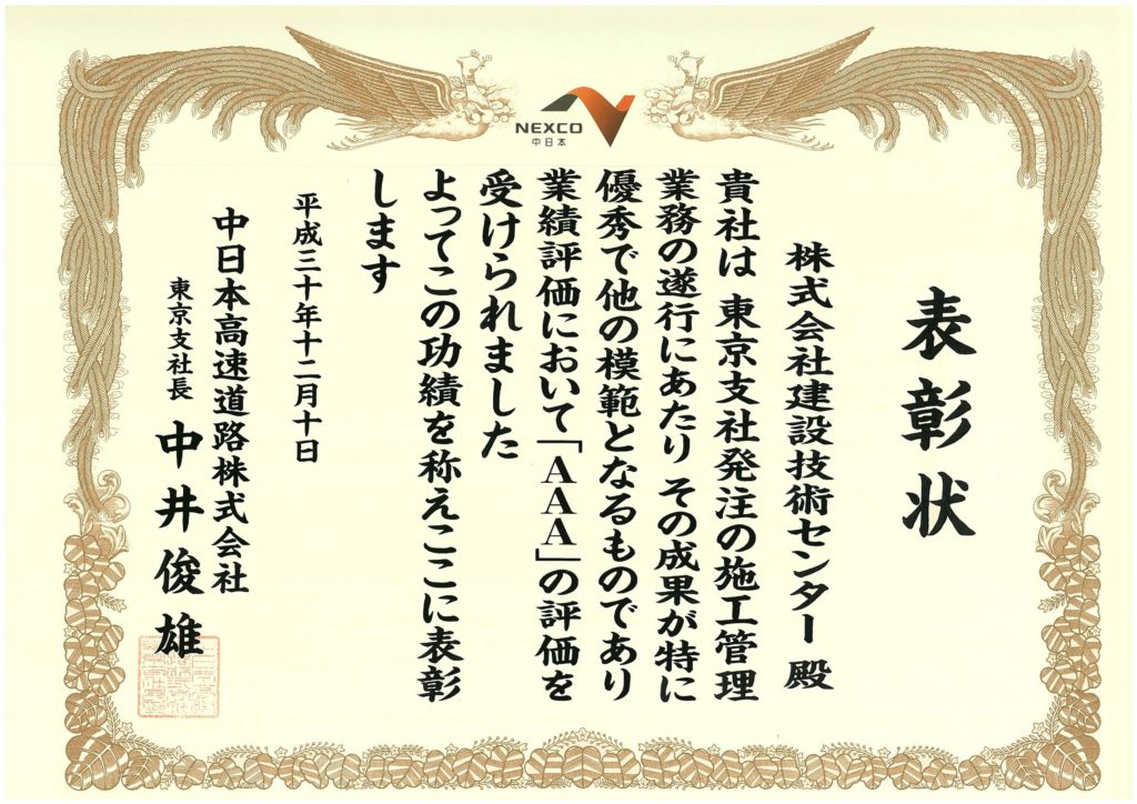 【平成30年12月(支社長表彰)】中央自動車道 八王子相模原地区施工(調査等)管理業務